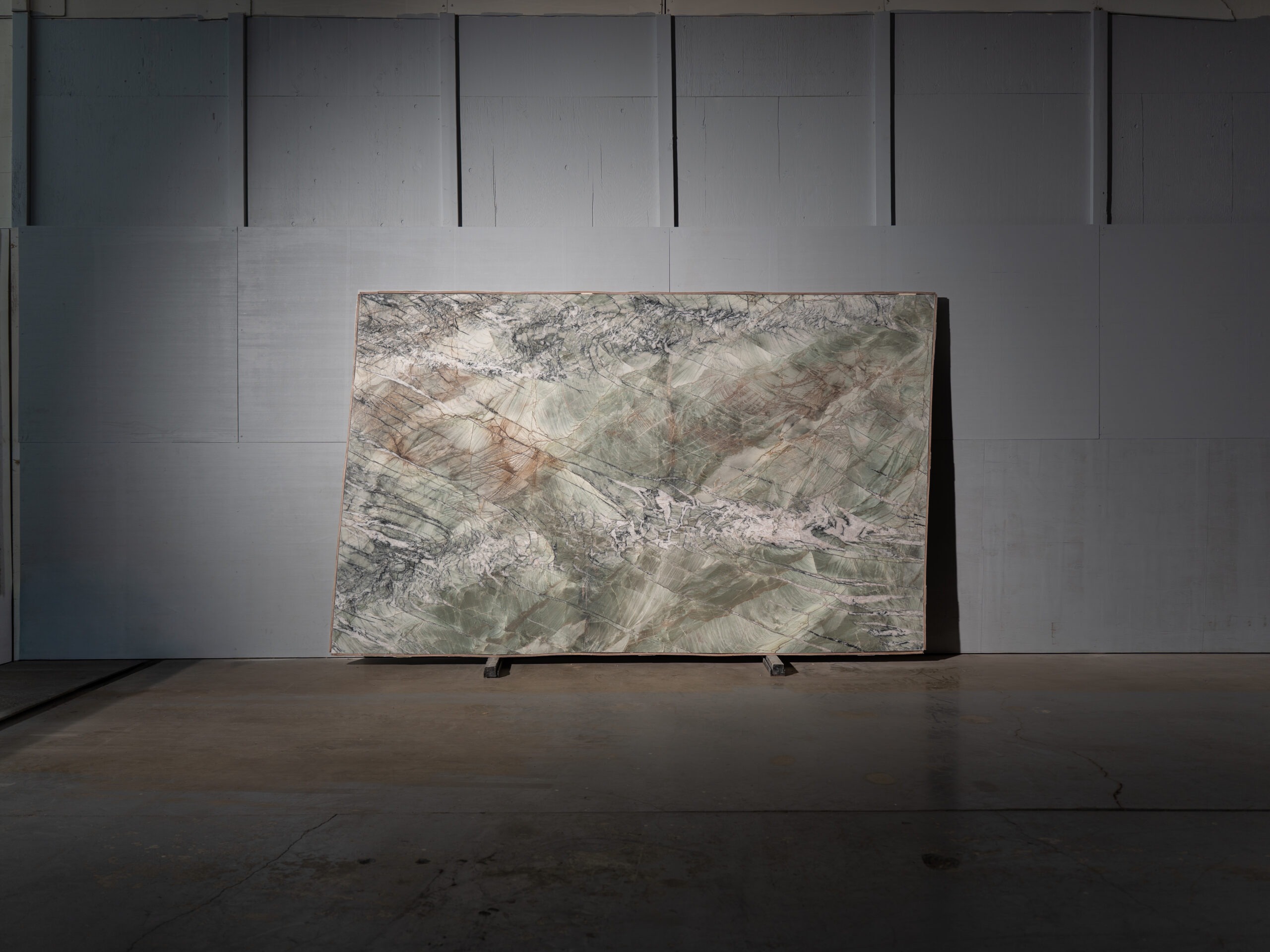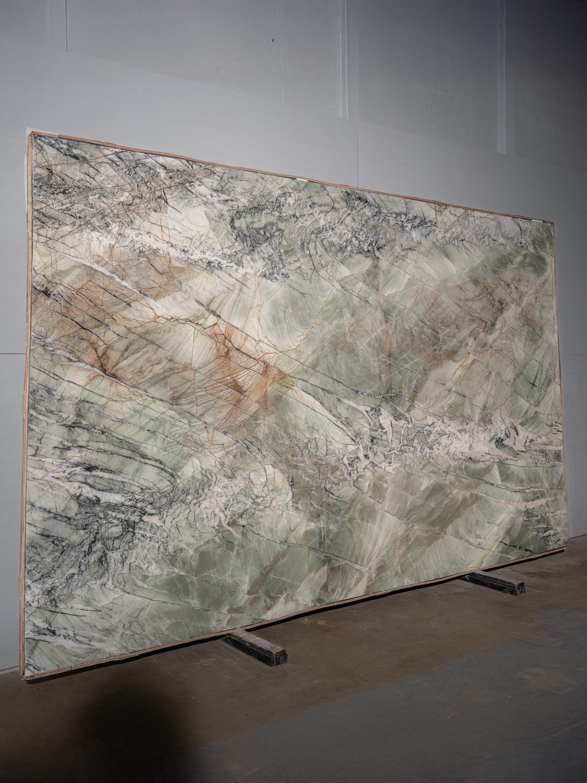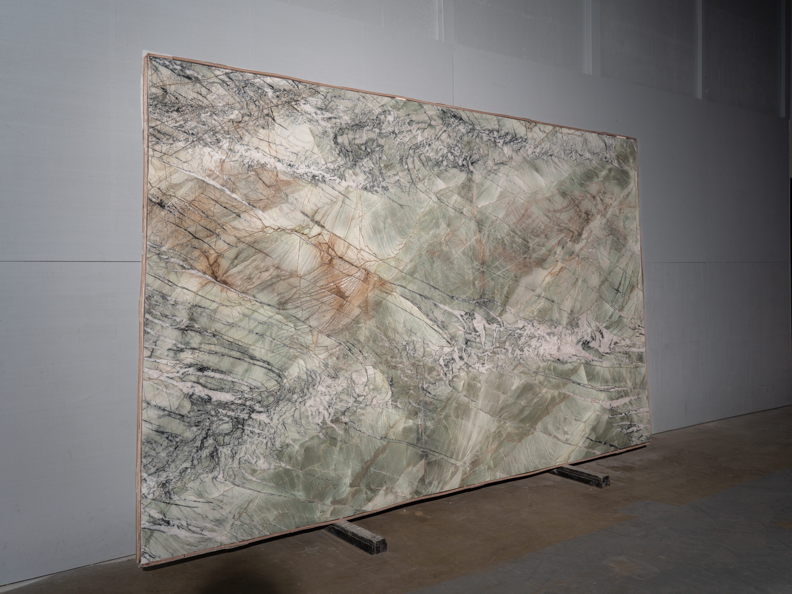 Quartzita exótica con una mezcla orgánica de verdes suaves, blancos, grises y vetas minerales profundas. Su movimiento natural recuerda paisajes tropicales y aporta carácter, lujo y resistencia. Ideal para proyectos de alto impacto donde se busca una piedra protagonista y funcional.