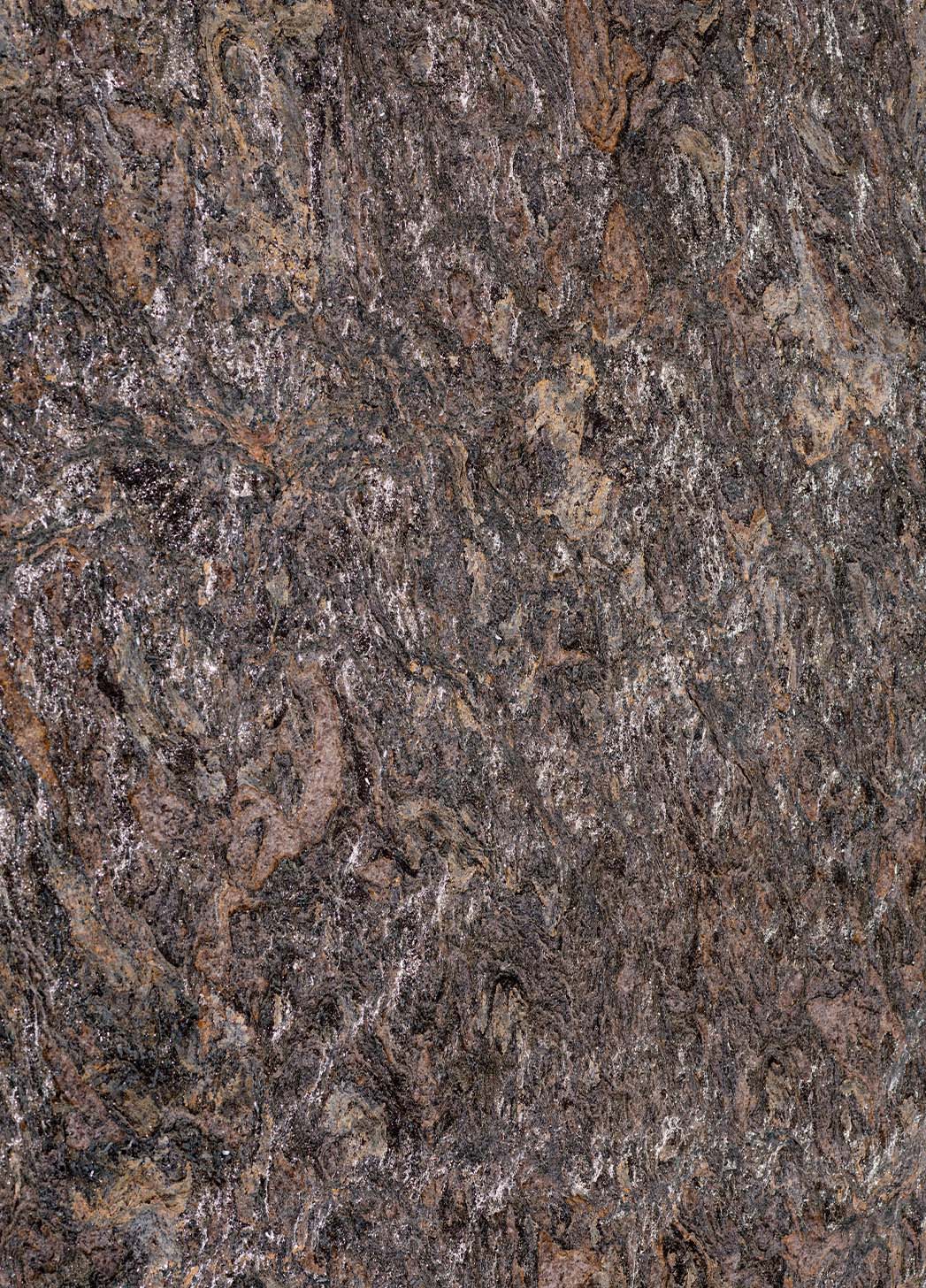 Un granito imponente definido por estratificaciones profundas y marcadas, que evocan formaciones sedimentarias esculpidas por la naturaleza a lo largo de milenios. Bedrock combina tonos grafito intensos con ondas fluidas en marfil y taupe suave, creando un paisaje visual poderoso contenido dentro de la propia piedra.